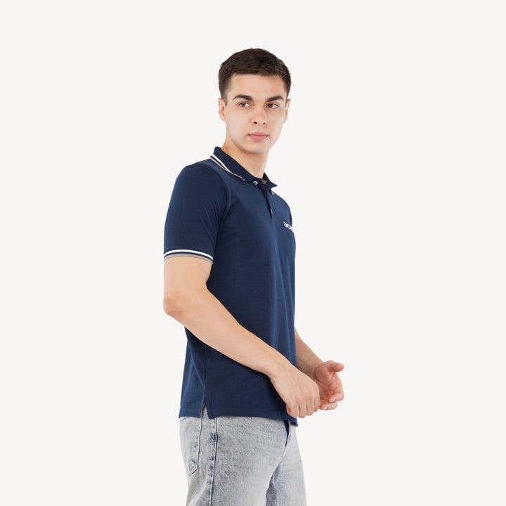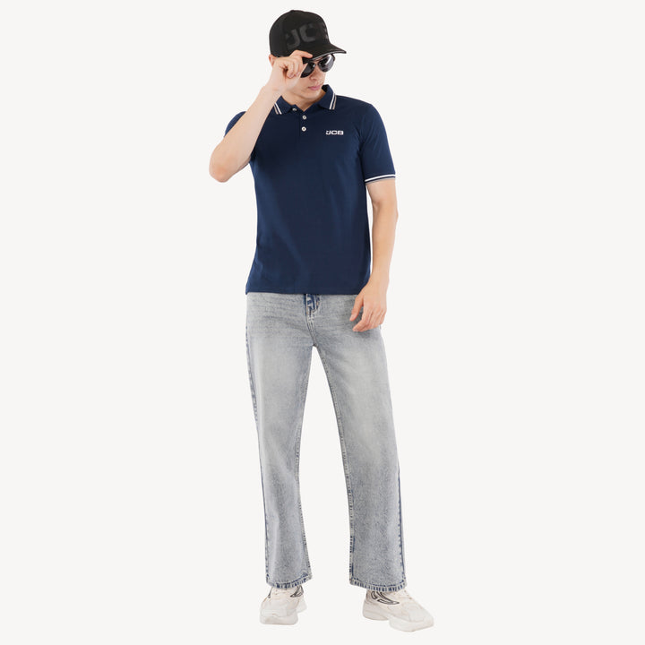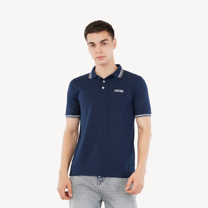Stay stylish and eco-friendly in the JCB RPET Blue Polo T-shirt. Made with recycled fabric, it offers lasting comfort and a rugged, professional look